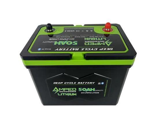 Replace 2 lead acid batteries with two group size 24 24v 50AH LiFePO4 batteries wired in parallel giving you 100Ah of power! Each battery weights in 26.75lbs and is currently the best 24v all day battery system money can buy! 24V on board waterproof charger included!