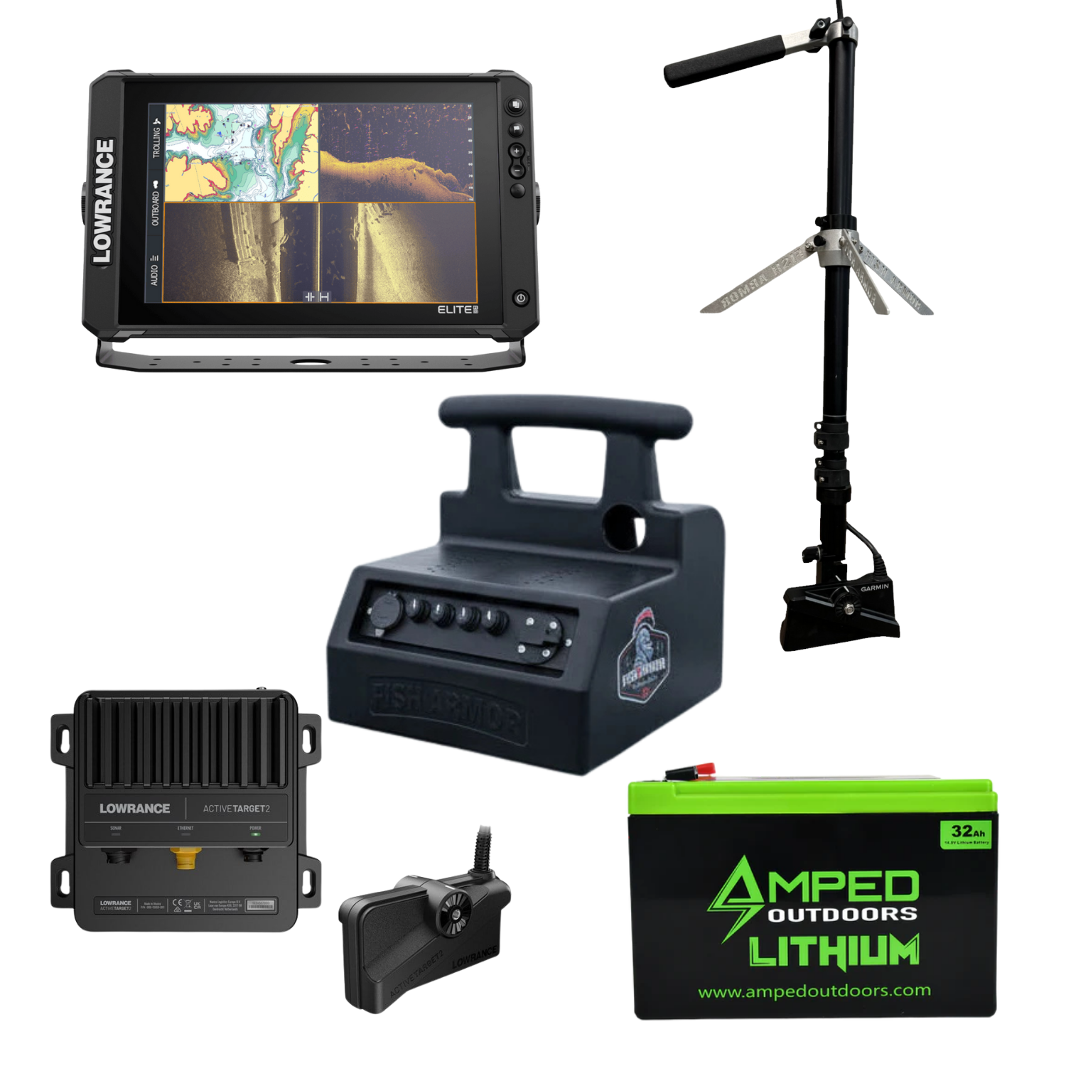 Take your fishing setup anywhere with the Lowrance Elite FS + ActiveTarget 2 Portable Bundle. This system pairs Lowrance’s feature-rich Elite FS display (your choice of 10" or 12") with the ultra-clean, high-resolution ActiveTarget 2 live sonar system—mounted on a rugged Fish Armor portable frame and powered by Amped Outdoors lithium batteries. Perfect for anglers who want top-tier live imaging in a lightweight, mobile package.