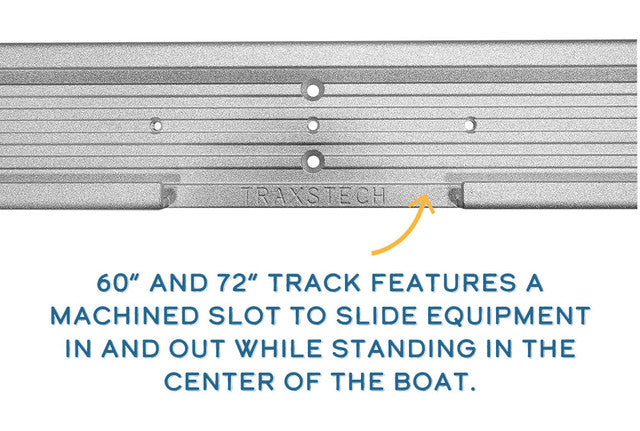 The foundation of Traxstech's Ultimate Fishing System is its anodized aluminum mounting tracks with a grooved interior design. Once installed, our mounting track system for boats allows rod holders, downriggers, and other marine electronics to be easily slid into the track. Once in place, the star-shaped thumb screws just need to be tightened to secure any accessories in place. When you are not fishing, just slide your fishing equipment out of the mounting track and replace it with our starboard sheet track insert.